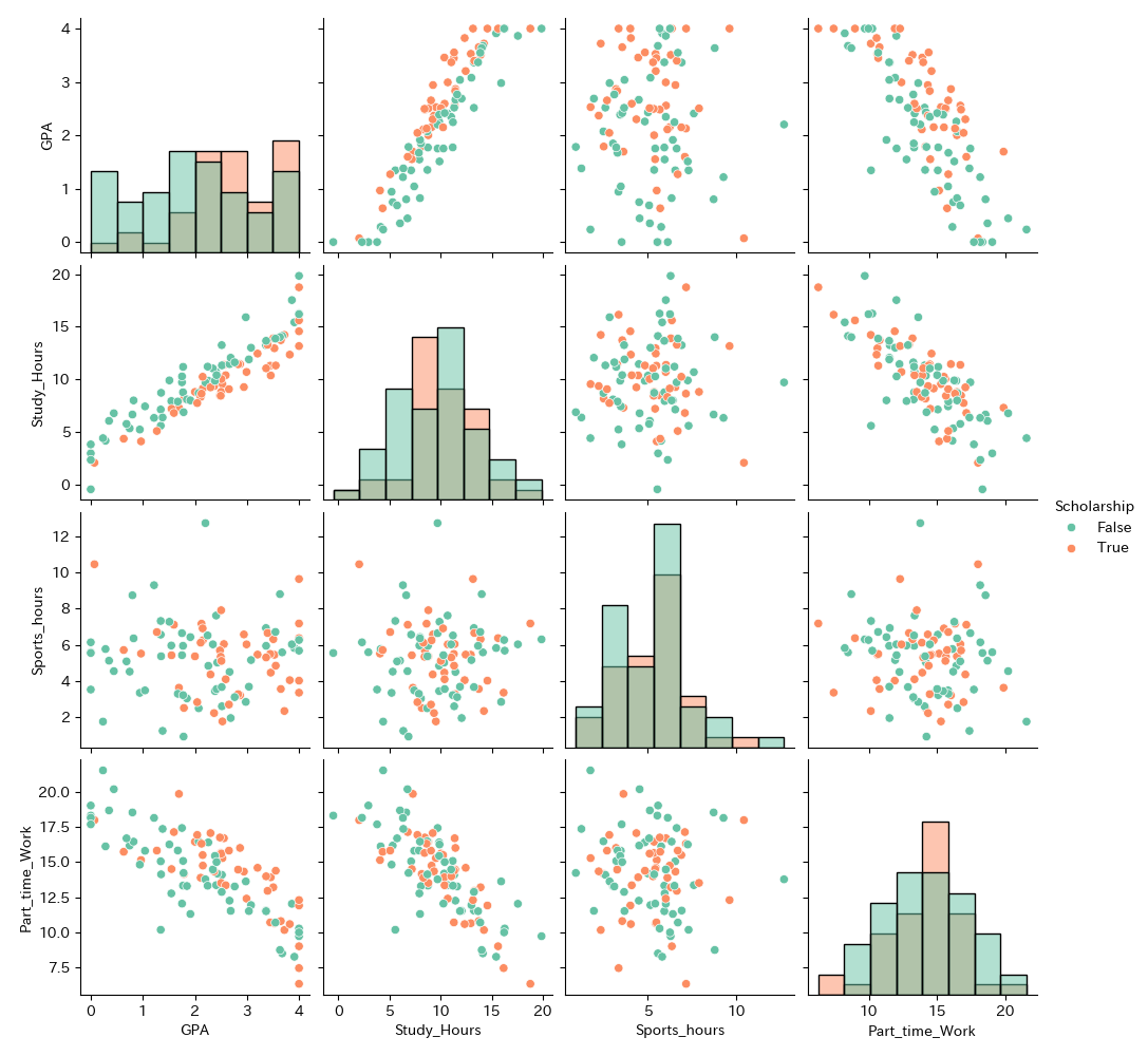 「奨学生であるか」「勉強時間」からGPAが予測できること