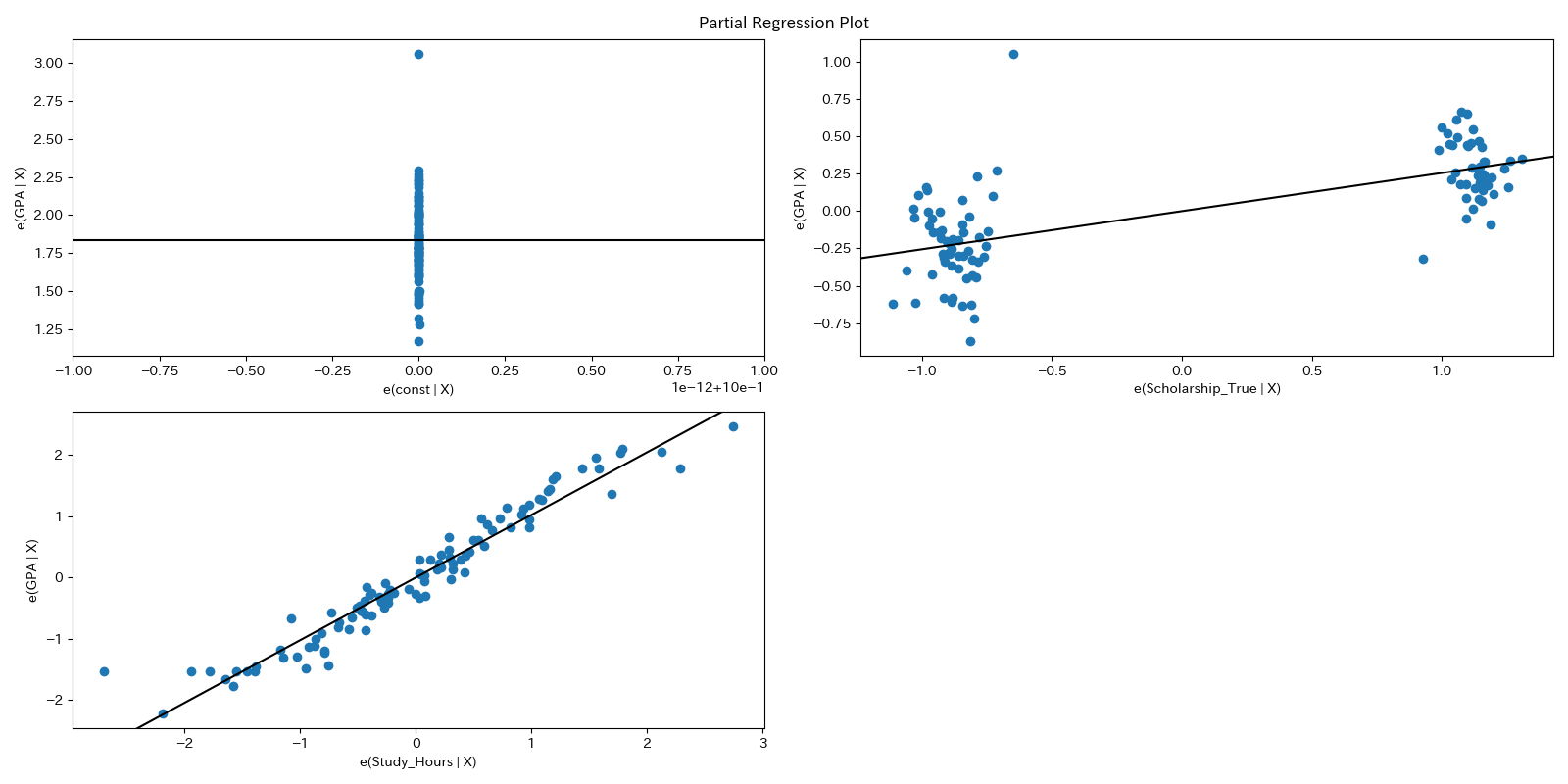 その他によく用いられるグラフにPartial Regression PlotやAdded-Variable Plotと呼ばれるグラフがあります..