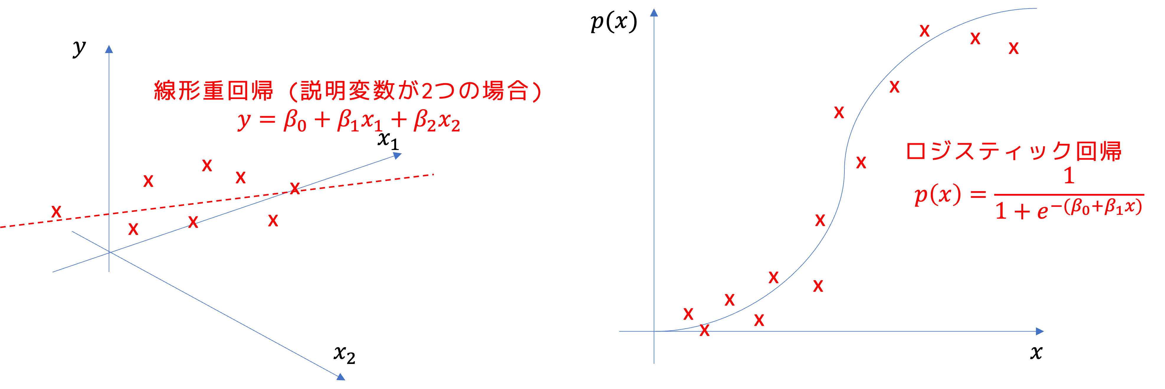 説明する変数xを説明変数,従属変数などと呼びます.