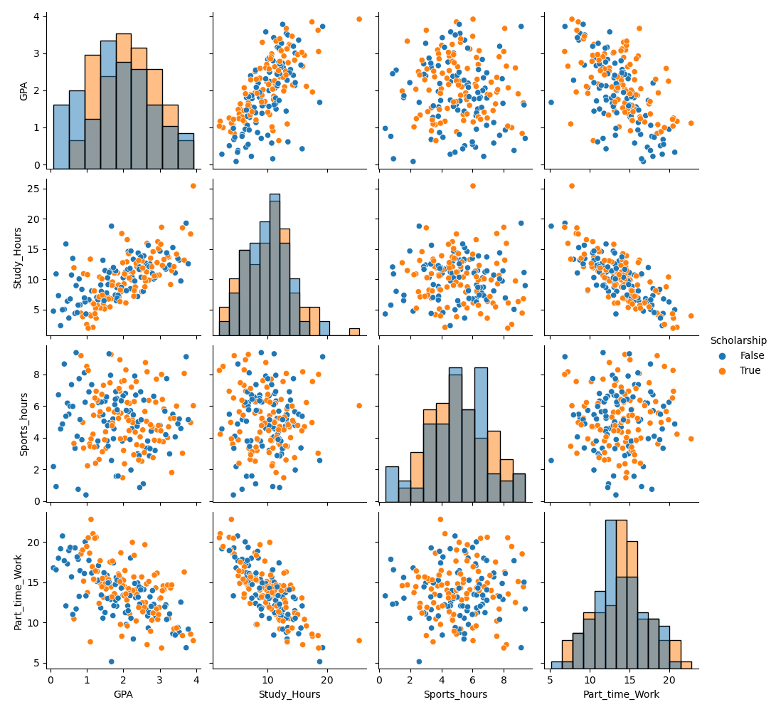 - Scholarshipの有無によって,それぞれの傾きが異なるのでは?
