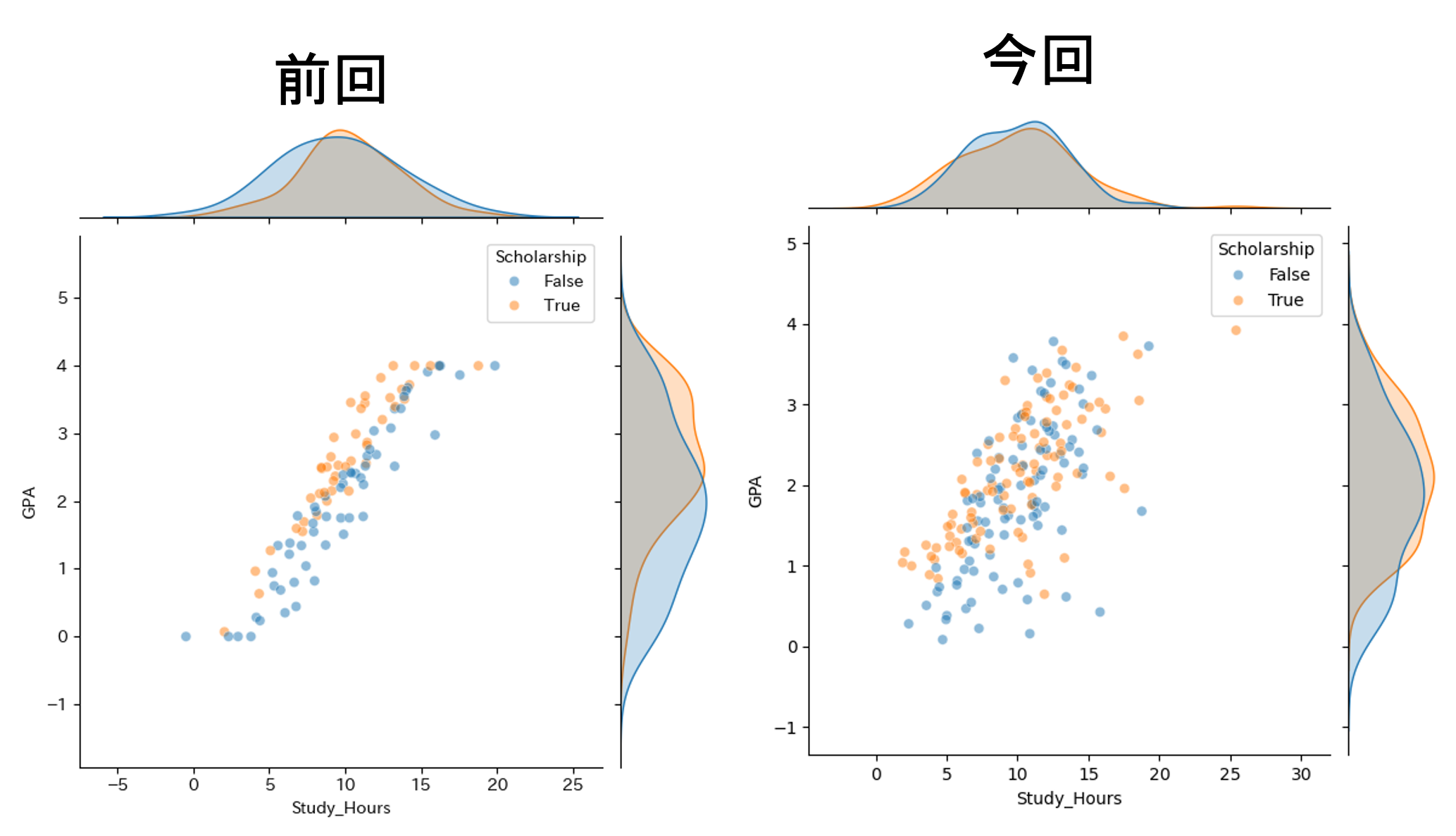 奨学金をもらっている人のほうがそもそも勉強時間あたりのGPAの伸び率が高いなど,層ごとに異なるパラメータを持つ可能性があります.
