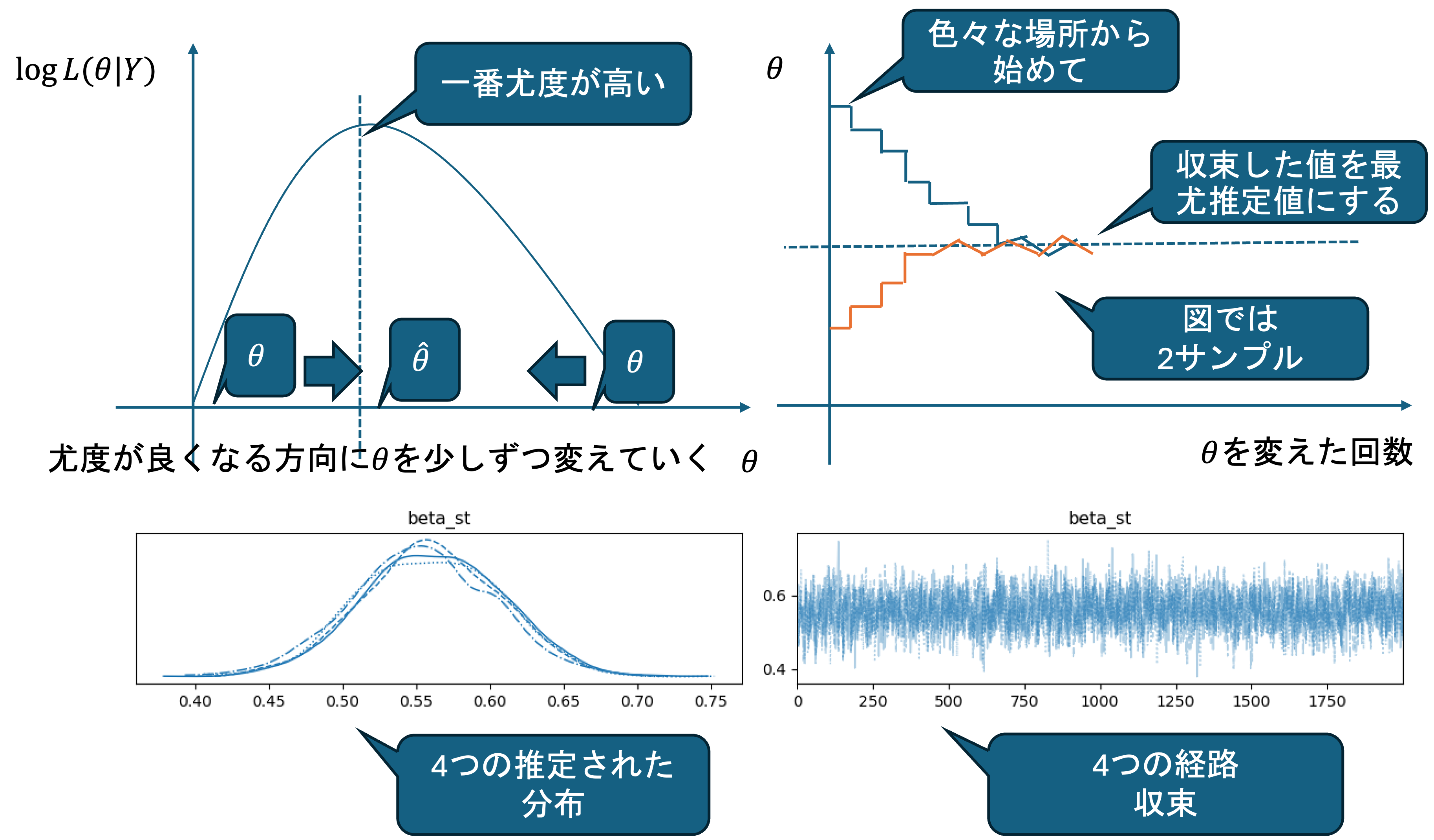 | 推定方法 | 最小二乗法 | ベイズ更新(MCMCなど) |
