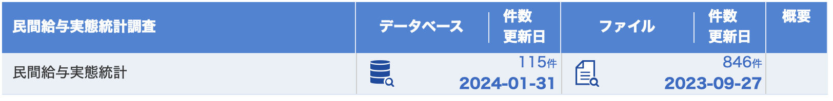 データベース形式か,ファイル形式か選択することができます. データベース形式は必要なデータをブラウザ上で選択,編集してデータを取得することができます. ファイル形式は,ExcelやPDFファイルをダウンロードできます. どちらでも問題ありませんが,ここではただのExcelファイルと,pandasで読み込めるデータの違いを確認するために,ファイルをクリックしましょう.