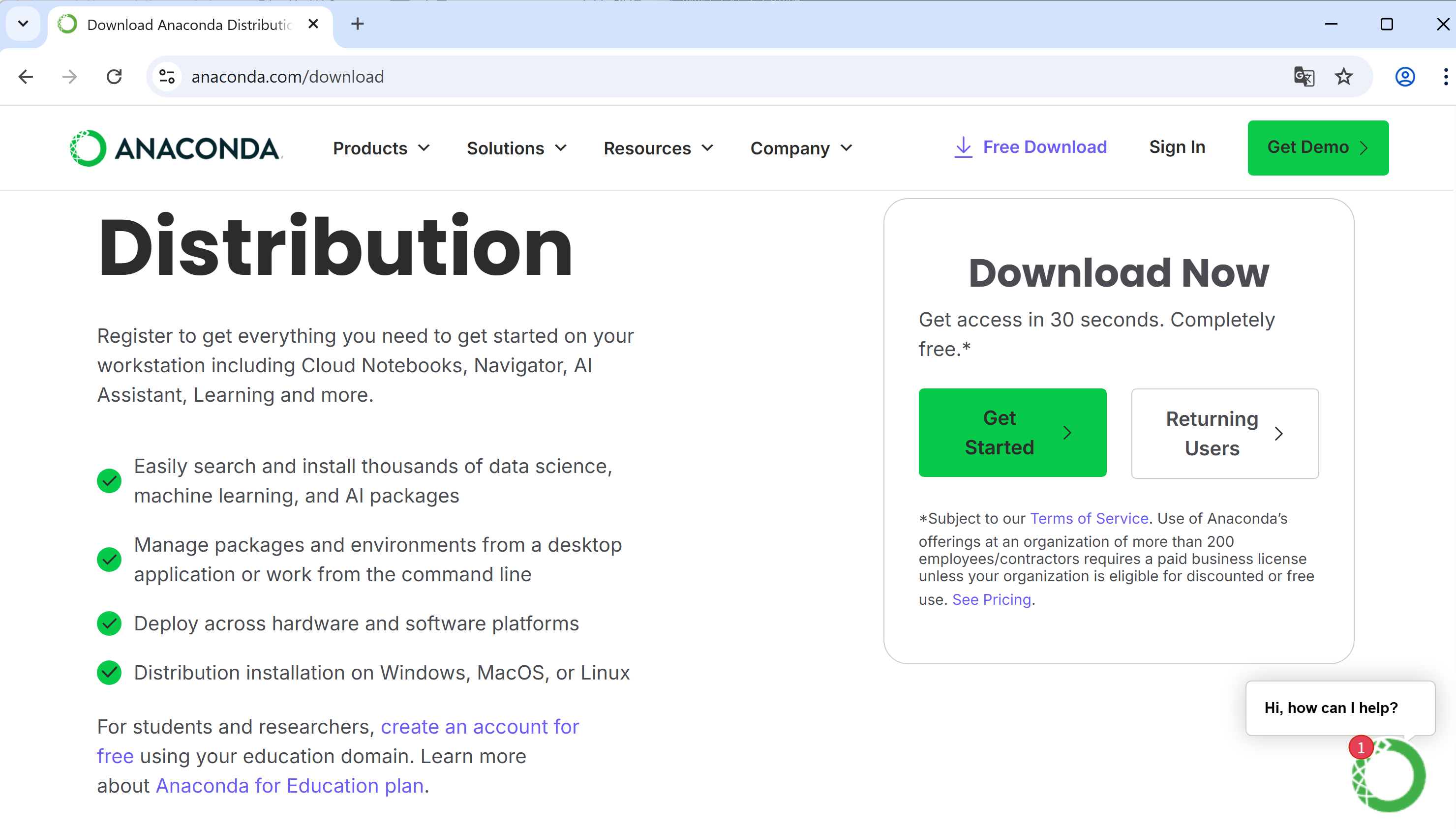 anacondaの公式ページに行き,Get Startedから指示に従ってアカウント等を作成して下さい.