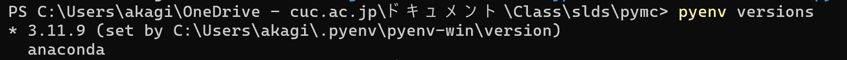 本記事は,授業資料(統計学特殊講義DS等)で使用していた pyenv + anaconda によるPyMC環境構築の手順を記録したものです.